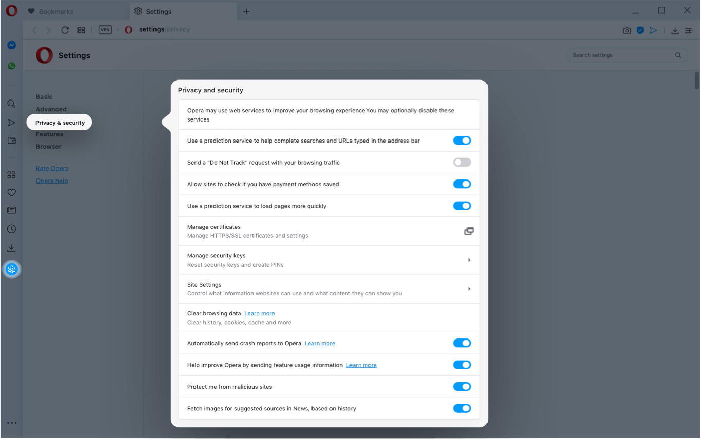 Visit our Help pages and see how to enable, adjust, and use all of the privacy and security features built into the Opera browsers.